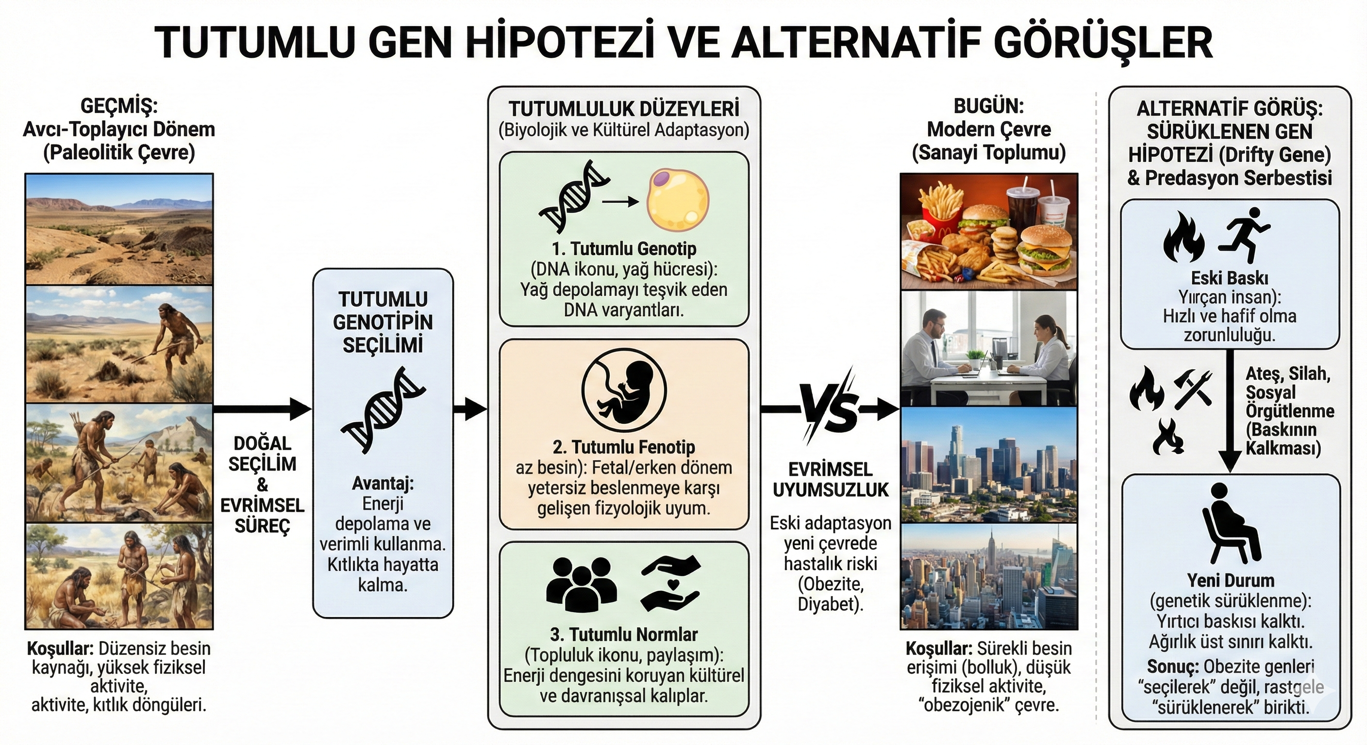 - Genetik Sabitlenme Beklentisi: Eğer kıtlıklar tutumlu genleri güçlü bir şekilde seçseydi, bu genlerin popülasyonun tamamına yayılarak sabitlenmesi gerekirdi. Ancak modern toplumlarda vücut kitle indeksi (VKİ) dağılımı yüksek bir varyasyon gösterir; herkes obez değildir.