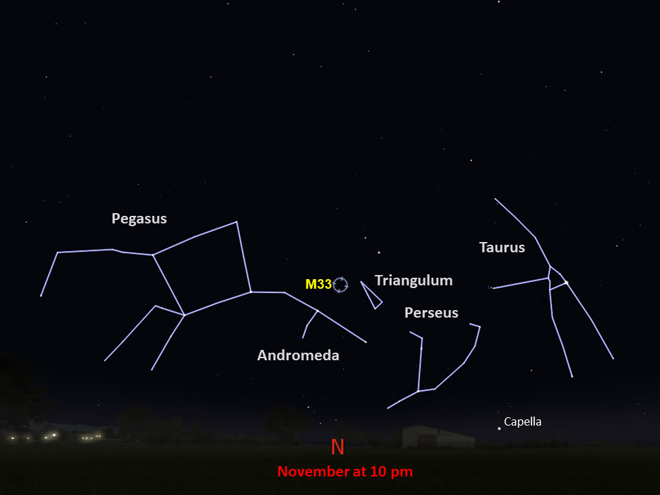 M33, Samanyolu ve Andromeda (M31) galaksilerinden sonra Yerel Grup’taki en büyük galaksidir. Spiral yapıda olup, çubuksuz bir spiral galaksi sınıfına girer.