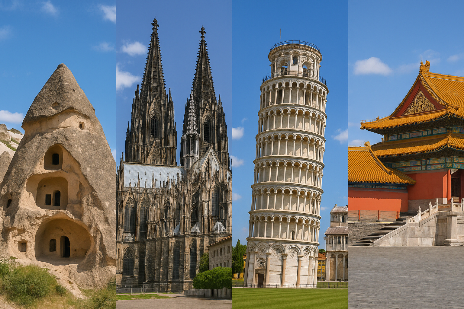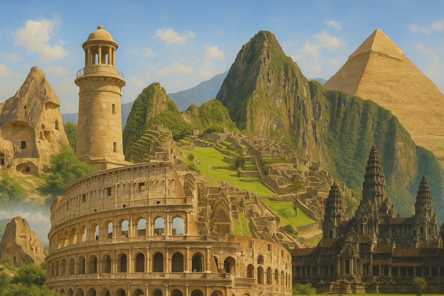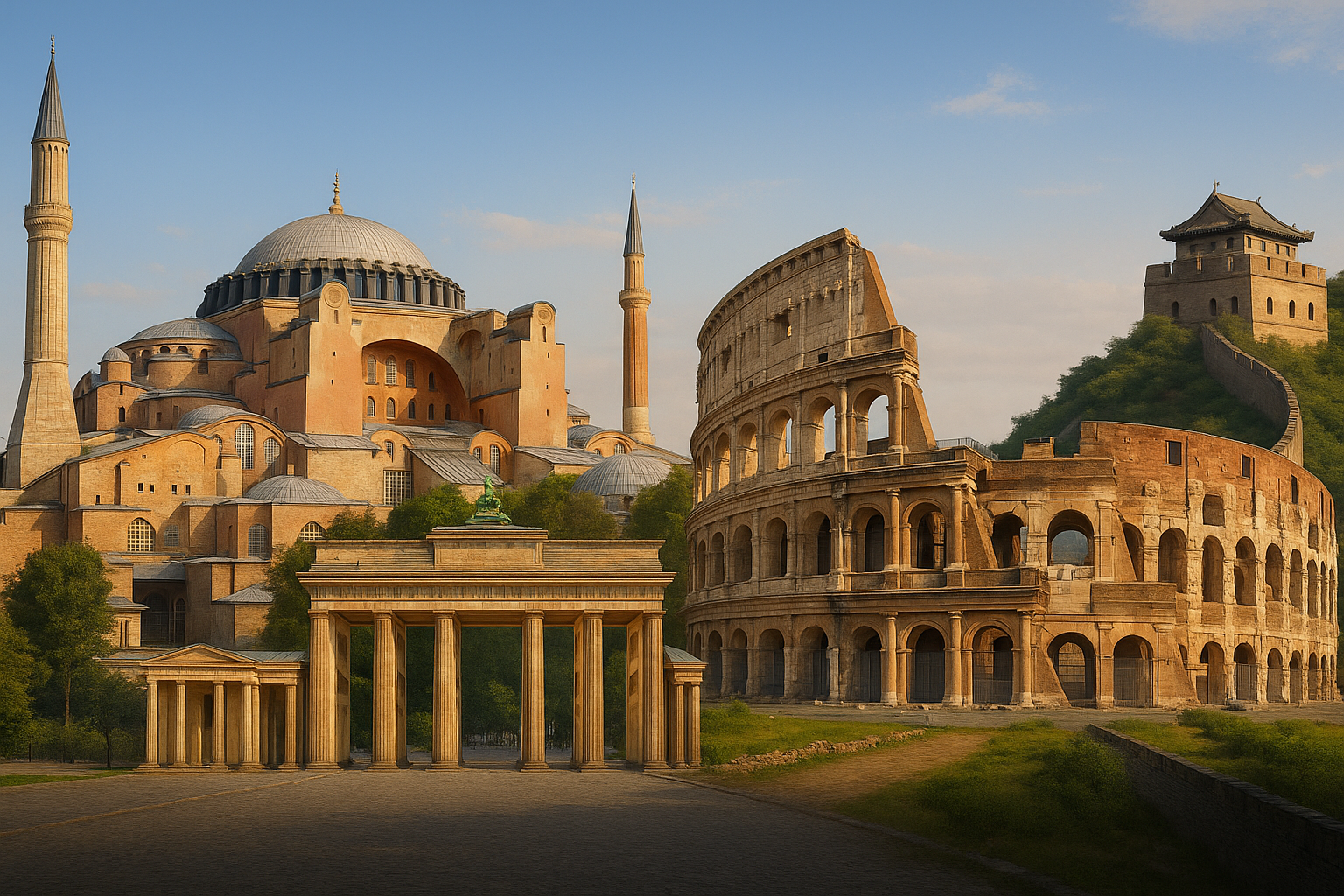Dünyadaki bazı önemli yapıların temsili görseli (Yapay Zeka ile Oluşturulmuştur.)