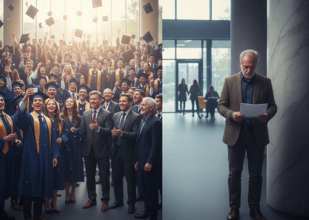 Mezuniyet Töreninde Kaprisin Gölgesi: Dışlanmışlık (Yapay Zeka ile Oluşturulmuştur.)
