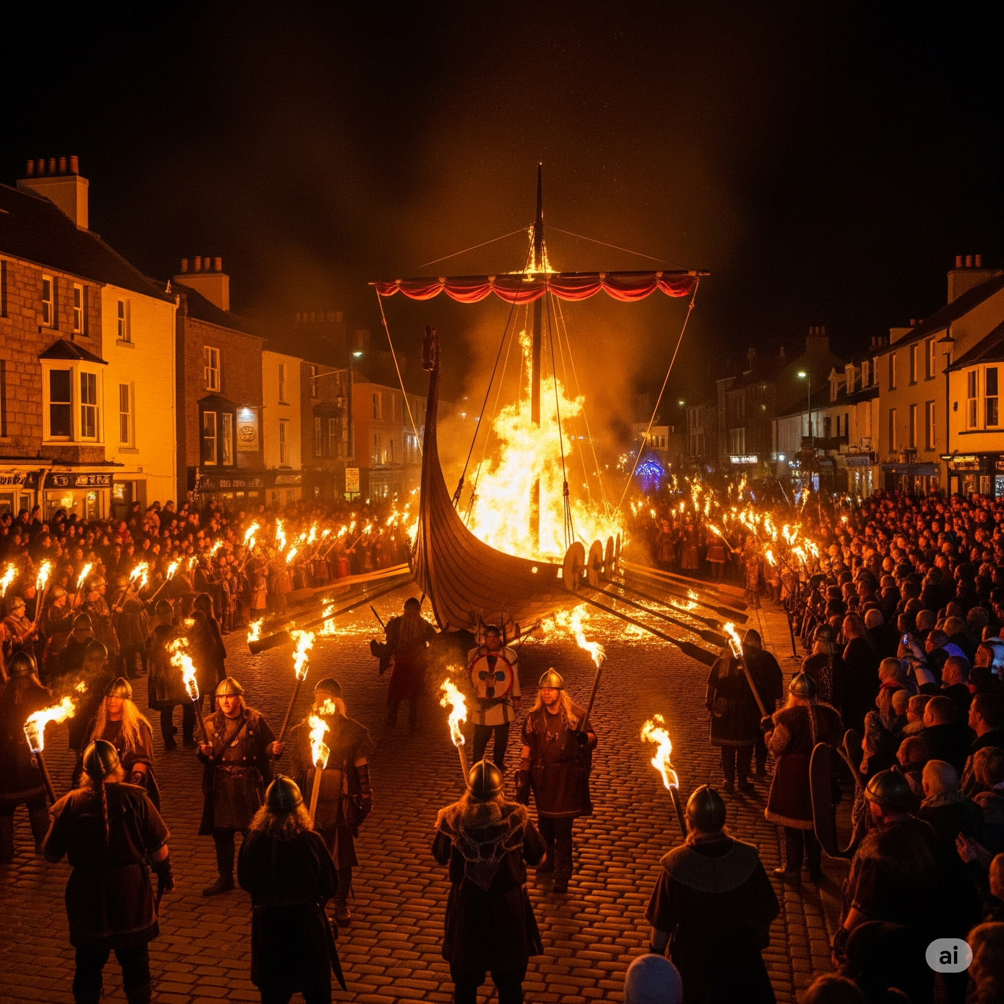 Festivalin merkezinde, el yapımı devasa bir Viking gemisi maketinin yakılması yer alır. Bu tören, “Galleon” (Kadırga) adı verilen gemi modeliyle yapılır ve yerel halk tarafından inşa edilir. Festival gecesi, katılımcılar Viking kostümleri giyerek yürüyüş kortejine katılırlar. Bu kortejde, müzik ve dans eşliğinde şehir sokakları dolaşılır. Gecenin sonunda, gemi maketi büyük bir törenle ateşe verilir.