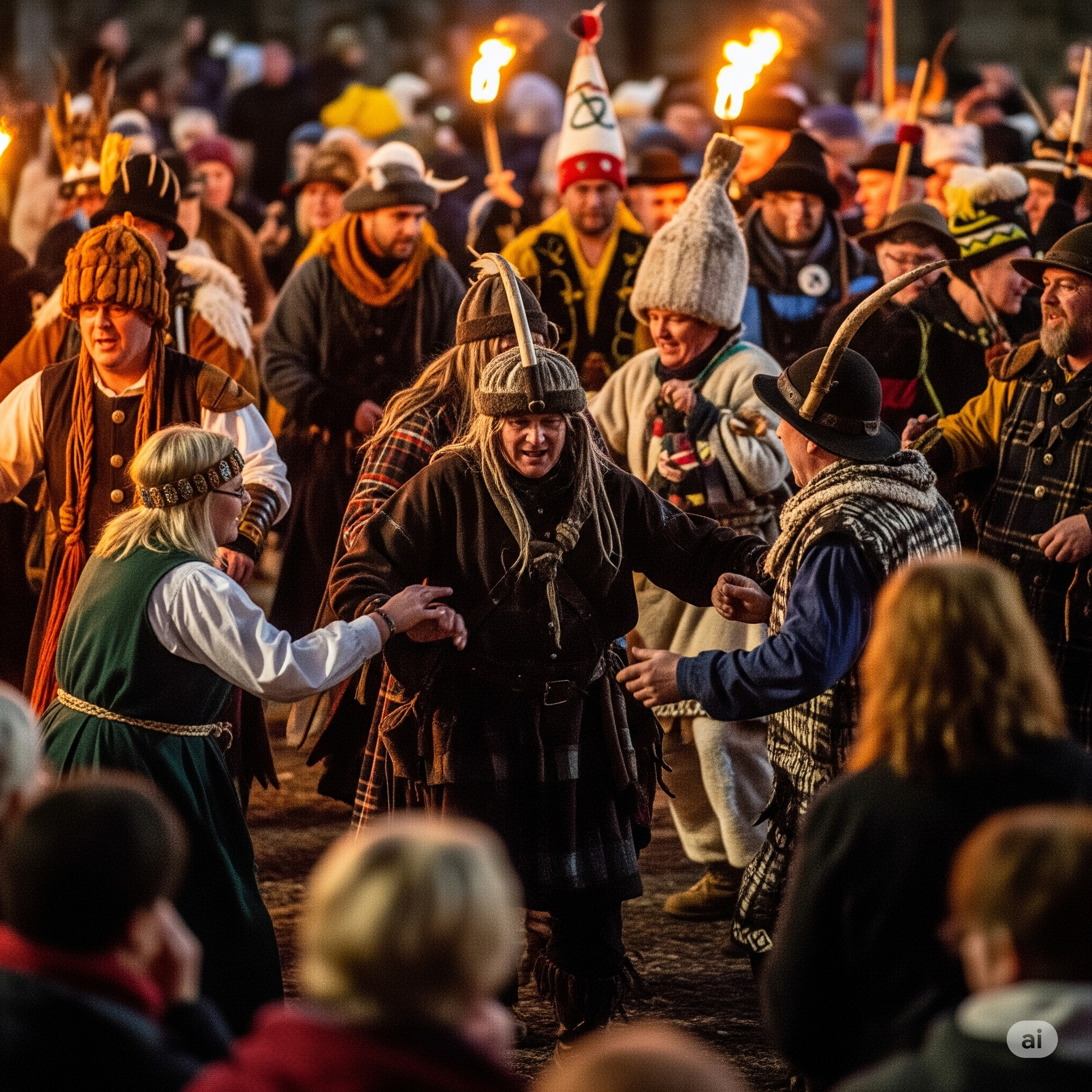 Up Helly Aa Festivali ' nde Kültürel Kaynaşma ( Yapay Zeka ile Oluşturulmuştur )