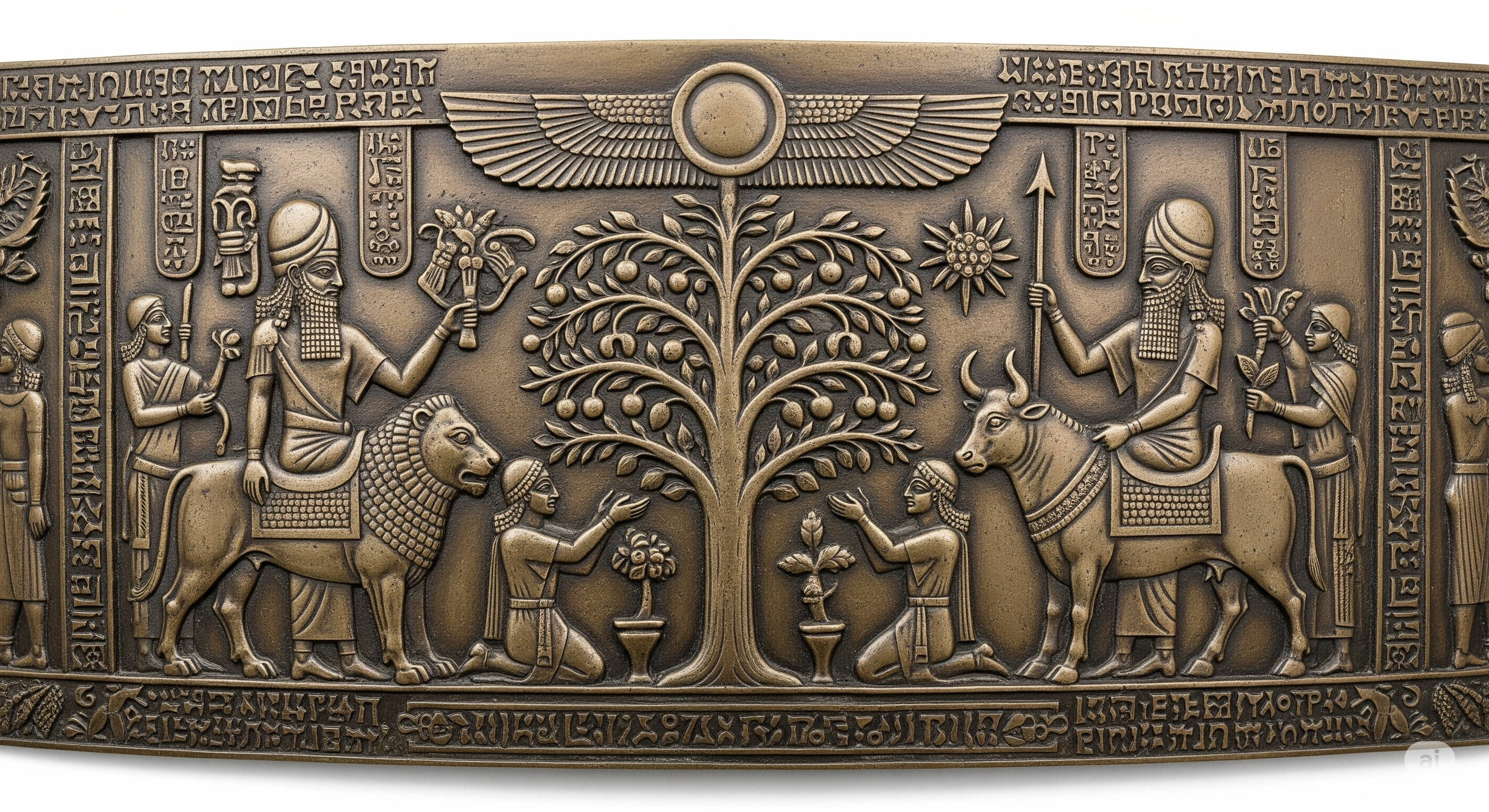 - Ağaç Kültü: "Kutsal Ağaç" veya "Hayat Ağacı" motifi Urartu sanatında sıklıkla görülür. Genellikle iki yanında kanatlı cinlerin (jeniler) yer aldığı bu kompozisyon, Asur sanatıyla paralellik gösterir.