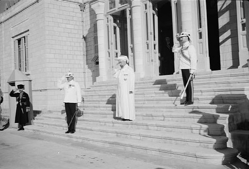 Kral Hüseyin Bir Tören Sırasında Selam Verirken En Solda Çerkes Muhafız Görülüyor (Library of Congress)