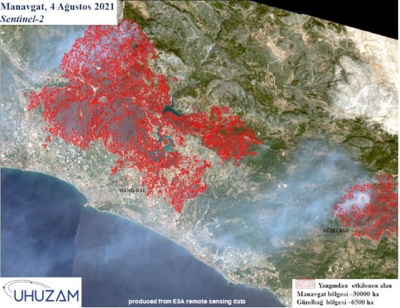 2021 Manavgat Orman Yangını Sentinel 2 Uydu Görüntüsü UHUZAM - Anadolu Ajansı