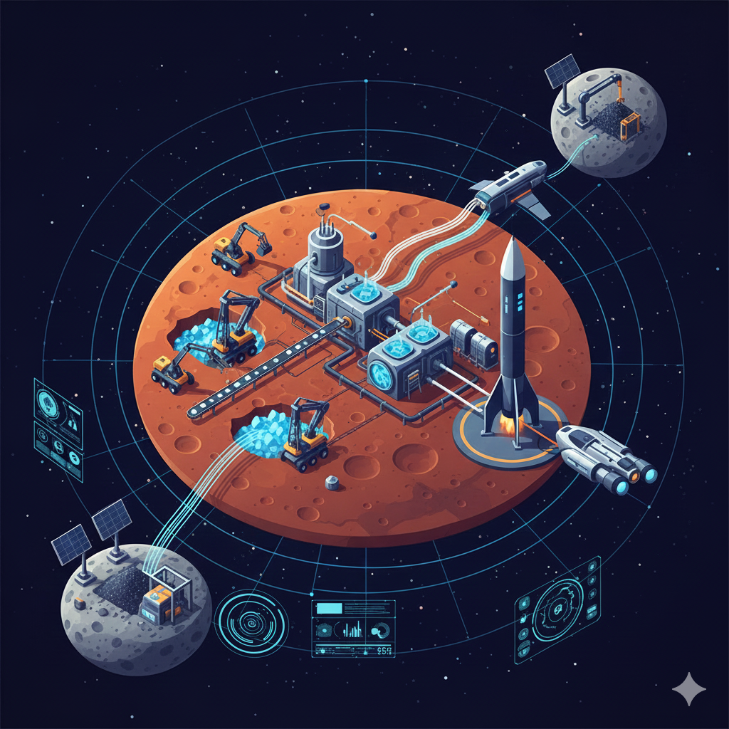 Uzay kaynaklarının ekonomik rasyonalitesi çoğu zaman Dünya’dan taşımaya kıyasla kütle, maliyet ve risk avantajı üzerinden kuruludur. Değerin oluşması, kaynağın çıkarılabilirliği kadar kullanım sıklığına, hangi görevlerin bu sayede mümkün olacağına ve lojistik ağın nasıl kurgulanacağına bağlıdır. Bu nedenle ilk uygulanabilir kullanım senaryoları genellikle itki bileşenleri ve kritik sarf malzemeleri etrafında şekillenir; daha kapsamlı malzeme üretimi ve yerinde inşaat gibi adımlar ise altyapı ve talep olgunlaştıkça önem kazanır. Ay merkezli deneyim birikimi, daha uzak hedeflere genişlemenin teknik ve operasyonel risklerini azaltmaya dönük bir basamak olarak ele alınır.