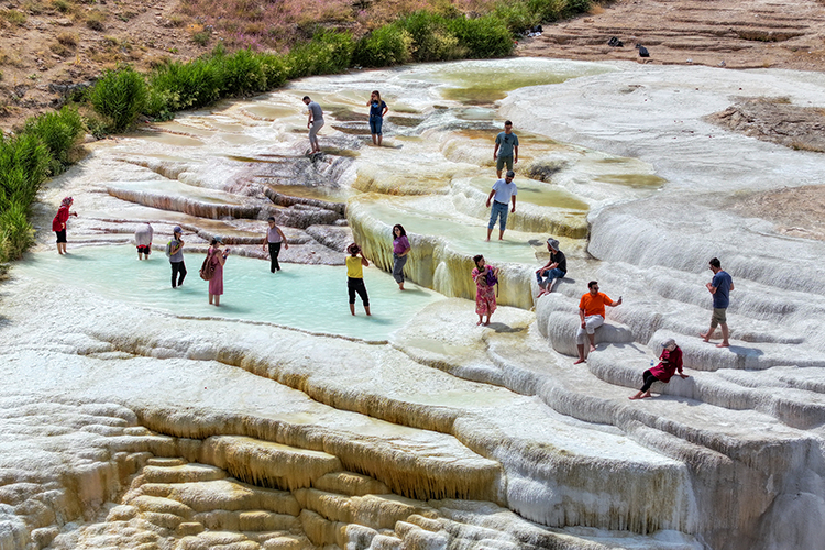Travertenler, farklı mevsimlerde ziyaret edilmektedir. Alanda yapılan çevre düzenlemeleri sonrasında, ziyaretçilere yönelik yürüyüş yolları, seyir alanları ve oturma noktaları oluşturulmuştur. Bölge, yerli ziyaretçilerin ilgisini çekmektedir.