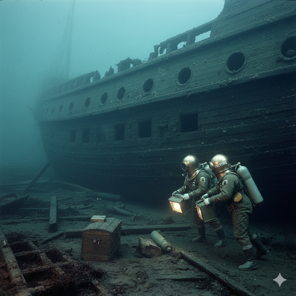 Geminin Gövdesinin, Pontonlara Bağlı Çelik Kablolarla Sudan Çıkarıldığı An (Yapay Zeka İle Oluşturulmuştur)