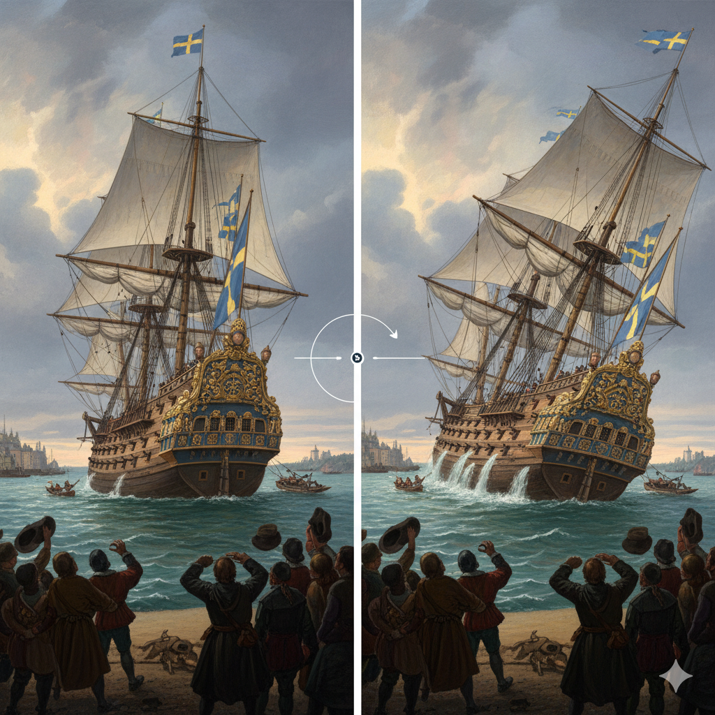 Vasa'nın Görkemli Ilk Seferi Ve Ardından Gelen Dramatik Batış Anı (Yapay Zeka İle Oluşturulmuştur)