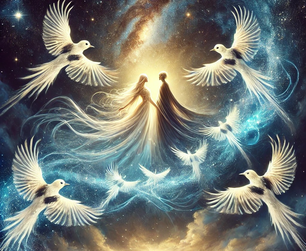 7 Temmuz'da Saksağan Köprüsü sayesinde buluşan Vega ve Altair'in bir temsili resmi (Yapay zeka yardımıyla üretilmiştir)