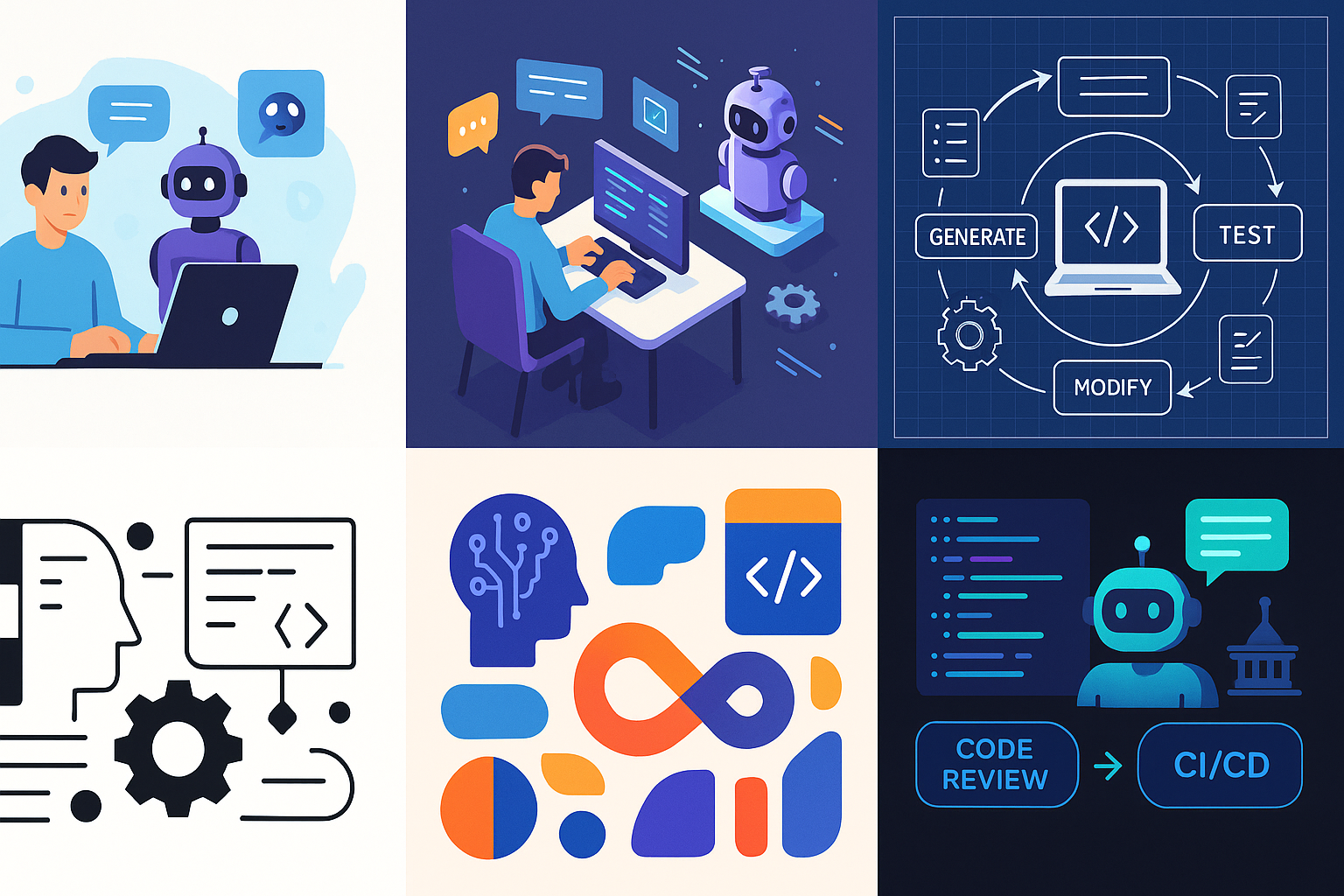 Kavramsal olarak yaklaşım, geleneksel “gereksinim → tasarım → uygulama” çizgisini bozmaz; ancak uygulama adımında üretimi hızlandıran bir eş-üretim katmanı oluşturur. Bu katmanda istem mühendisliği, bağlam yönetimi (görev, dosya, depo, dokümantasyon), kademeli ayrıştırma, birim/entegrasyon testi ve sürüm kontrolü birlikte işler. Süreç, geliştirici deneyimi ve görev türüne göre değişmekle birlikte; tipik akış, hedefin netleştirilmesi → ilk taslak kodun üretilmesi → çalıştırma ve gözleme dayalı düzeltmeler → güvenlik, lisans ve kalite kontrolleri şeklinde yapılandırılır.