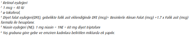 Günlük Vitamin Alım Tabloları İçin Ek Açıklamalar (TÜBER, 2022)