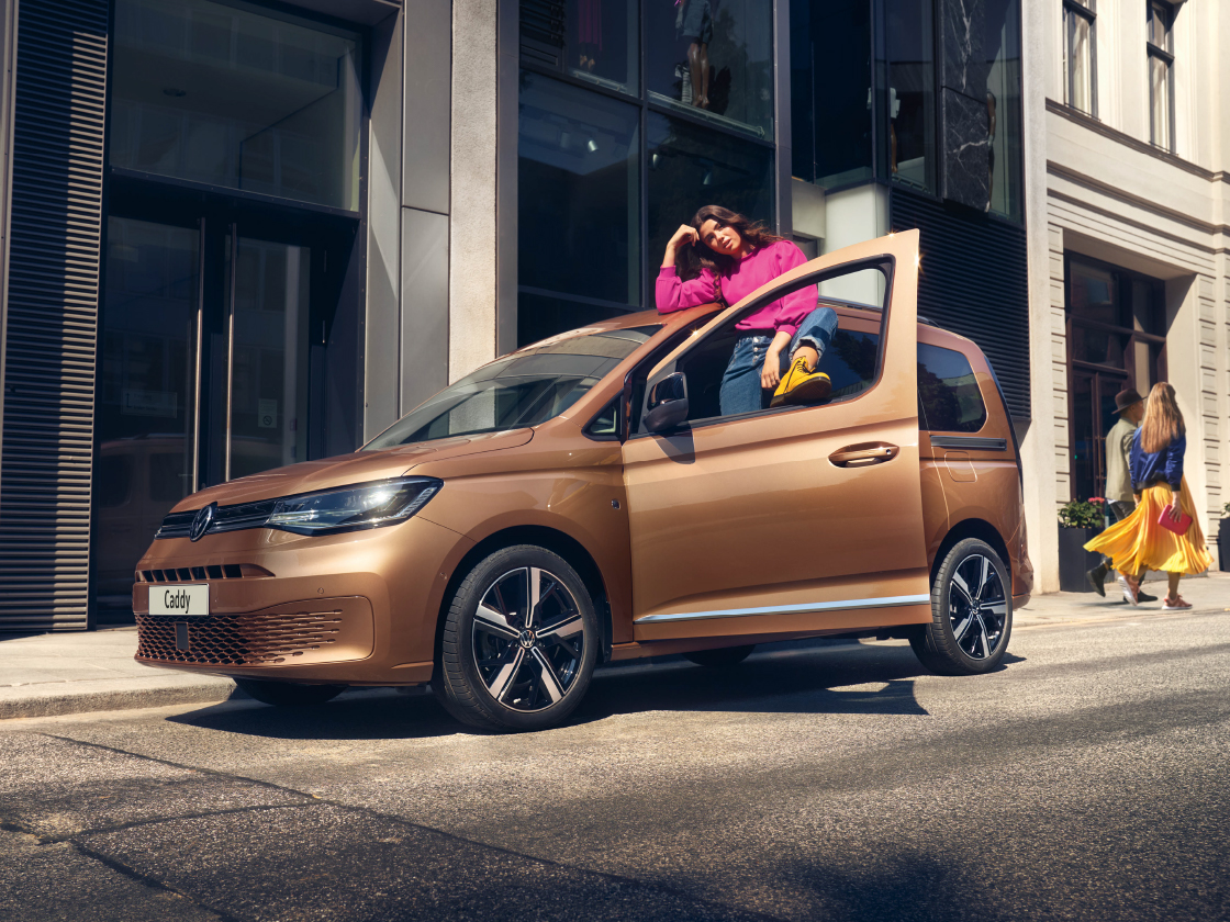 Yeni Caddy, önceki nesillere kıyasla daha aerodinamik bir yapıya kavuşmuştur. Geniş ön ızgara, dar far grubu ve modernleştirilmiş stop lambaları aracın dış görünümünde öne çıkan unsurlar arasında yer alır. 5 ve 7 kişilik konfigürasyon seçeneklerine sahip olan model, aile kullanımına da hitap etmektedir. Arka sürgülü kapılar ve alçak yükleme eşiği, kullanım kolaylığı sağlamaktadır.