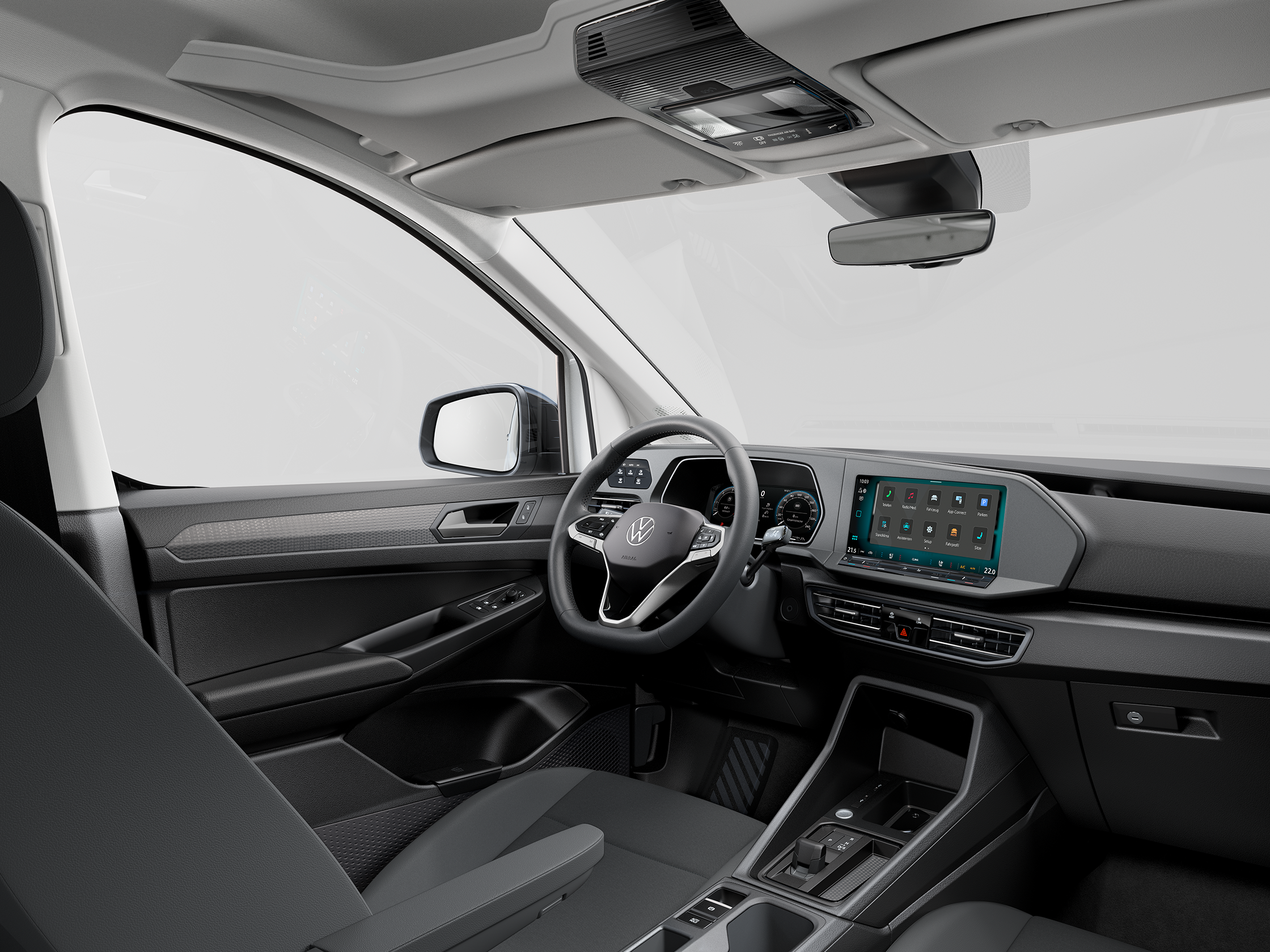 Caddy, modernleştirilmiş iç tasarımıyla daha dijital bir sürüş deneyimi sunmaktadır. Geniş ön konsol, ergonomik kontroller ve artırılmış görüş açıları kullanıcı dostu bir kokpit yaratır.