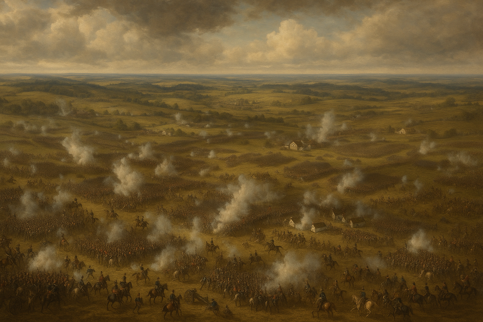 Waterloo Muharebesi, 18 Haziran 1815 sabahı, Napolyon Bonapart komutasındaki Fransız ordusuyla, Dük Wellington idaresindeki Birleşik Krallık ve müttefik kuvvetleri ile Mareşal Blücher komutasındaki Prusya ordusu arasında gerçekleşti. Napolyon, İmparatorluk Muhafızları da dâhil olmak üzere geniş kapsamlı bir kuvveti harekete geçirmişti. Savaşın ilerleyen saatlerinde İngiliz ve Prusya kuvvetleri, koordineli bir şekilde Fransız ordusuna karşı üstünlük sağladı. Bu birleşik taarruz sonucunda Fransız hatları çözüldü ve Napolyon ağır bir yenilgiye uğradı. Waterloo Muharebesi, Fransız İmparatorluğu’nun son büyük kara çatışması olarak kayda geçti; aynı zamanda Napolyon’un siyasi ve askerî kariyerini sona erdirdi.