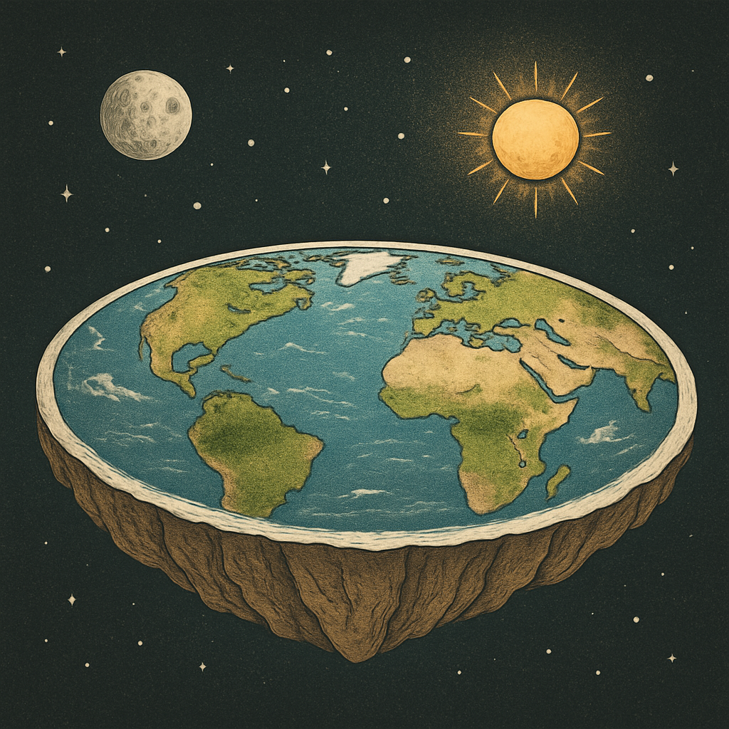 Dünyanın düz olsaydı nasıl görüneceğini temsil eden bir görsel. (Yapay zeka ile oluşturulmuştur.)