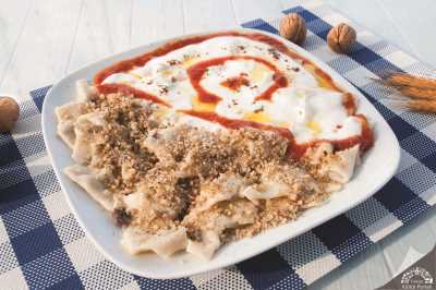 - Cevizli Yakakent Mantısı: Hafif yağlanmış tepsiye ince dövülmüş ceviz serpilir, üzerine mantılar yayılır. Üzerine eritilmiş tereyağı gezdirilir ve tekrar ceviz serpilerek servis edilir.