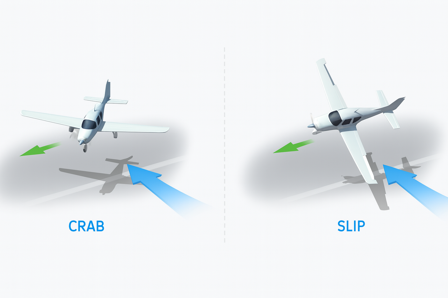 Crab ve Sideslip Yöntemleri (Yapay zeka ile oluşturulmuştur.)