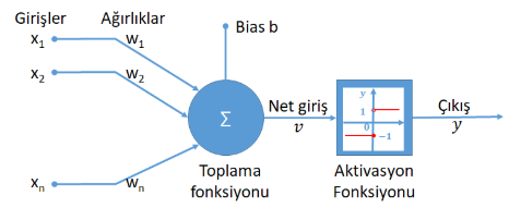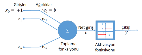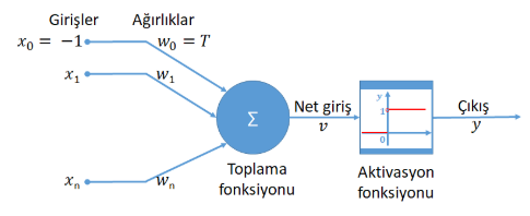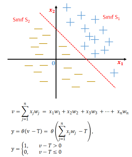 TLU nöronunun matematiksel formülleri aşağıdaki şekilde gösterilmektedir: