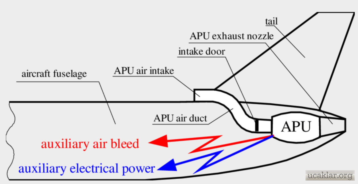- APU, hava sıkıştırma sistemlerini çalıştırarak kabin içi sıcaklık ve havalandırmayı düzenler.