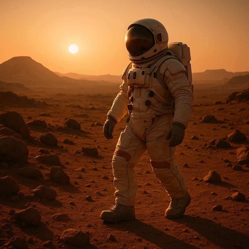 Mars'ta Yaşam Arayan Bir Astronot (Yapay Zeka İle Oluşturulmuştur.)