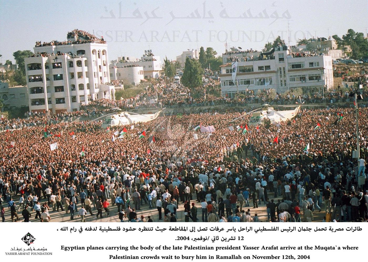 Cenaze süreci, Filistin’de ve Arap dünyasında geniş yankı uyandırmıştır. Arafat’ın vasiyeti doğrultusunda Kudüs’e defnedilmesi istenmiş, ancak İsrail hükümeti buna izin vermemiştir. Bunun üzerine naaşı 12 Kasım 2004’te Kahire’de düzenlenen resmî törenin ardından Ramallah’a getirilmiş ve Mukataa yerleşkesine defnedilmiştir. Cenaze törenine çok sayıda devlet temsilcisi ve uluslararası kuruluş yetkilisi katılmıştır. Mezarı daha sonra sembolik bir türbe hâline getirilmiş, Ramallah’taki “Yaser Arafat Anıtı ve Müzesi” kompleksi içerisinde yer almıştır.