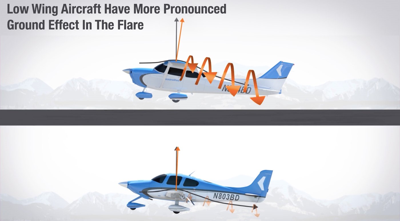 Yer etkisi alçak ve yüksek kanatlı uçaklar üzerinde farklı etkilere sahiptir. Bu durumu açıklamak için iki örnek incelenirse durum daha kolay anlaşılacaktır: