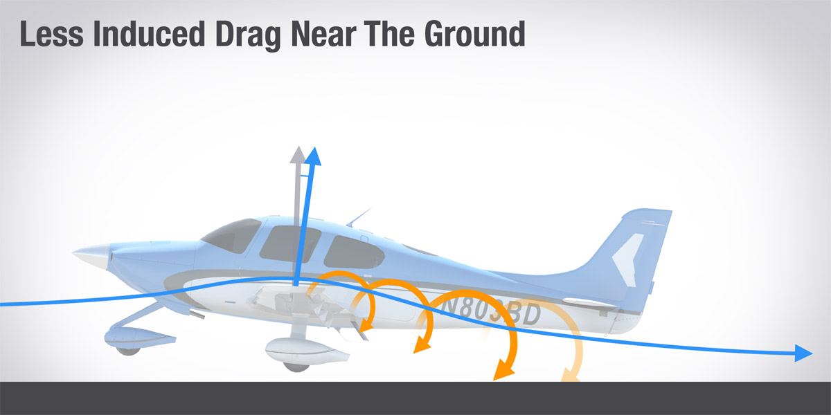 Cessna 172; park pozisyonunda iken kanadı yaklaşık yerden 2 metre yüksekliktedir ki bu, bu uçağın kanat açıklığının yaklaşık %20'sine tekabül etmektedir. Bu durum, uçağın inmeden hemen önceki indüklenmiş sürtünmesinin yüksek bir irtifadaki indüklenmiş sürüklenmesinin yaklaşık %60'ına eşit olmasını sağlar.