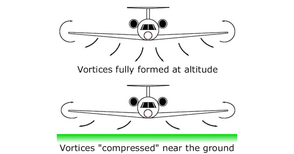 Yer etkisi temelde, kanat ucu girdaplarını kısıtlar. Yere yakın konumda kanat girdapları havadaki kadar büyüyemez. Bu durum aşağı akım denilen bir etkinin azalmasını sağlar. Aşağıdaki fotoğrafta kanat ucu girdaplarının farklı irtifalardaki boyutları görülmektedir. Fotoğrafta da görüldüğü üzere yere yakın olan uçağın kanat ucu girdapları tam olarak oluşamamıştır.