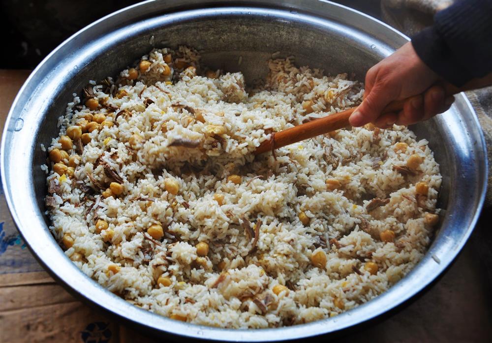 Pirinçler, 2 yemek kaşığı salamura tuz ile birlikte ılık suda 1–2 saat bekletilir, ardından el değmeden soğuk su ile iyice durulanır. Süzülen kemik suyu ve eklenen 6 su bardağı su kaynatılır. İçine haşlanmış nohut, didiklenmiş et, tuz ve karabiber eklenir. Son olarak pirinç ilave edilerek kısık ateşte 10–15 dakika suyunu çekene kadar pişirilir.