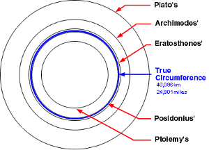 Farklı bilim insanlarının hesaplarına göre dünyanın çevresi.