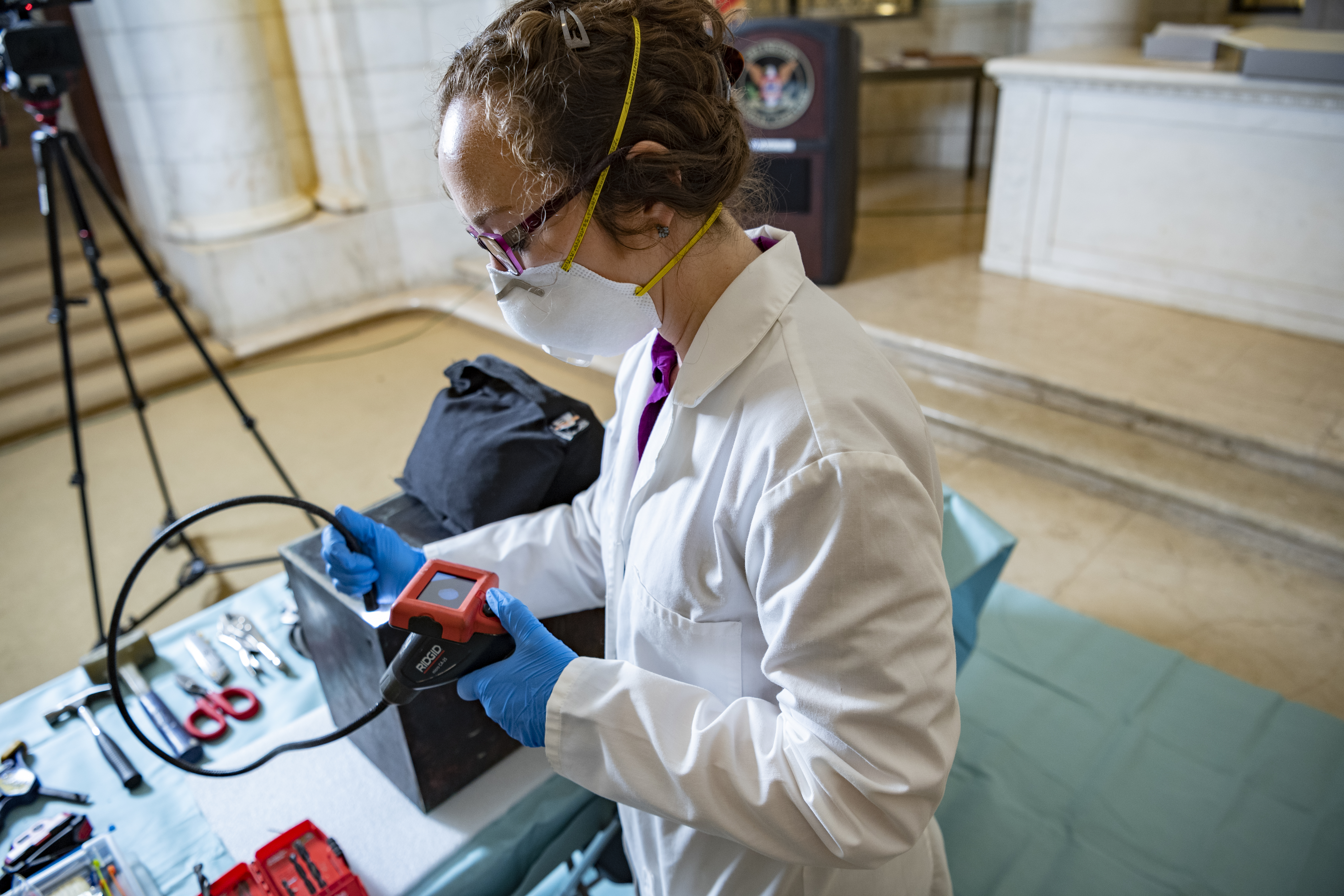 Arlington Ulusal Mezarlığı'ndaki Anıt Amfitiyatro'nun Açık Köşe Taşının İçinde Bulunan 1915'ten Kalma Zaman Kapsülü'nün Açılışı (Flickr)
